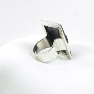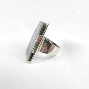 Silver Abalone Ring | 925 Silver Large Chunky Rectangular Accent Ring
