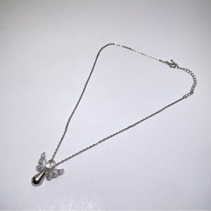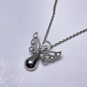 Angel Pendant Clear Crystal & 20” Chain Silver Tone.