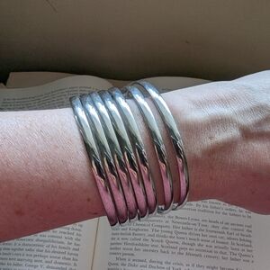 Elegant silver bangle bracelet set. Perfect for any occasion.