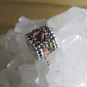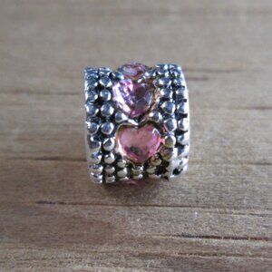 925 Sterling Silver European Charm with a band of pink crystal hearts. Fits Pandora snake chains. Chain not included. Acquired pre-2010.