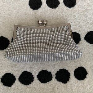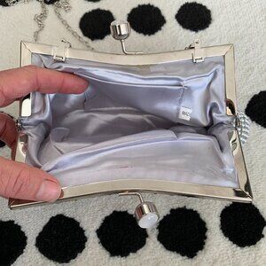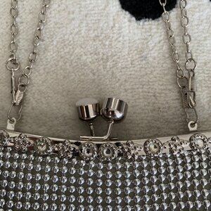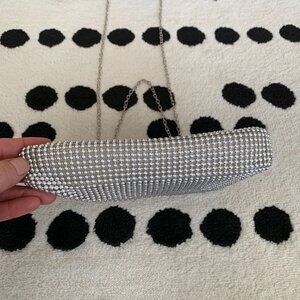 Silver Beaded Rhinestone Clutch Chain Shoulder Strap Bag Small Evening Handbag