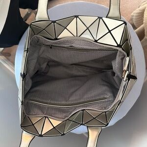 Silver Black Large Geometric Tote Handbag Diagonal Square Pattern Zip