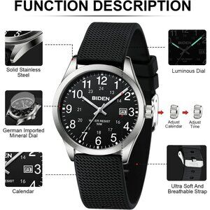 Elegant Mens Watch: Mens analog watch made with anti-scratch mineral dial window, exquisitely crafted. Ultra soft silicone strap, wear-resistant and scratch-resistant, breathable, easy to maintain. Men's wrist watch is an ideal gift for you and your loved ones.