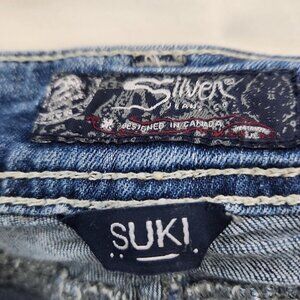 These Silver brand distressed jeans feature a classic boot cut design, perfect for a laid-back yet stylish look. The distressed detailing adds a touch of edge, making them a versatile choice for casual outings. With a flattering fit and durable construction, these jeans are both comfortable and trendy.