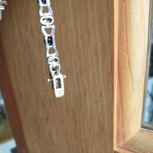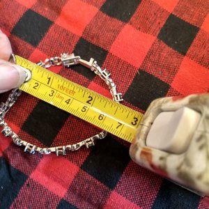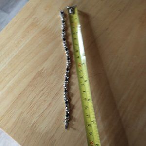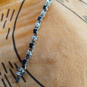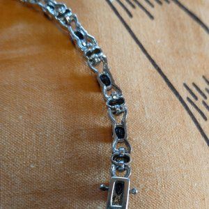 Never worn stamped silver bracelet with real garnets. Length is 8"L see pics for size when done up