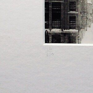 Silver bromide photograph by Montréal photographer Allan Manus entitled Place Jacques-Cartier. Gorgeous minimalist piece in black and desaturated neutrals with a white mat.