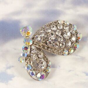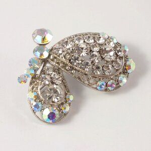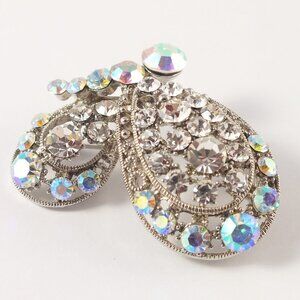 Silver Butterfly Brooch Pin with aurora borealis fashion crystals