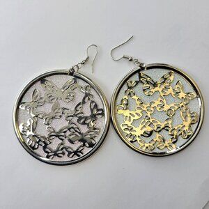 Silver Butterfly Earrings Silver Glitter Large Round Earrings Butterfly Earrings