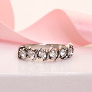 Silver CZ Ring, Solid Sterling Silver 925 Ring, Sparkly Vintage Ring