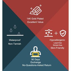 Material: Exquisite 14K Gold Plated. Lead-free, nickel-free, and hypoallergenic. It's very Skin-Friendly and suitable for daily wear