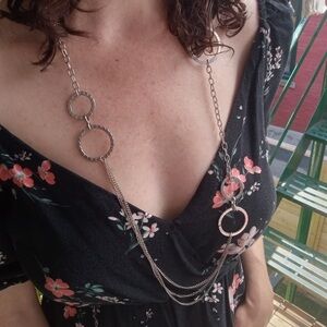Silver Chain Necklace with Hearts and Circles