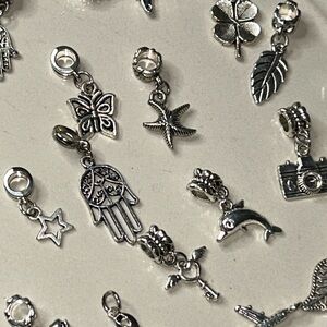 Explore this exquisite collection of silver charms, perfect for adding a touch of elegance to any jewelry piece. Each charm is crafted with intricate details, making them a unique addition to your collection.