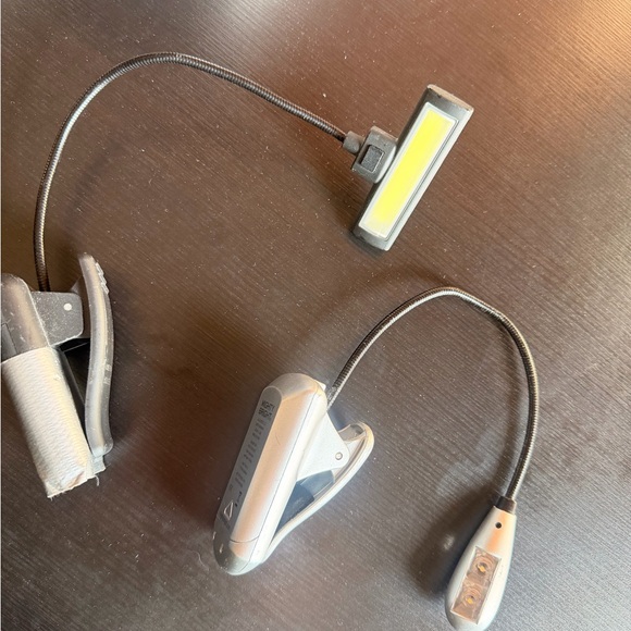 Enhance your reading experience with this sleek silver clip-on LED light. Perfect for late-night reading, it offers flexible positioning and a bright, focused beam. Ideal for tablets and e-readers.