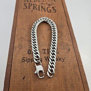 This chunky men's stainless steel bracelet looks amazing on any wrist, and with any clothing style. With it's Cuban style links and heavy weight, its a quality piece of men's jewelry! I love this piece!