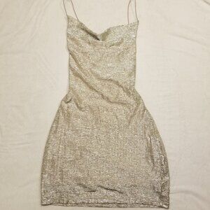 Silver Cowl Neck Mini Dress Glittery/Sparkly/Metallic Strappy Small US 6 H&M