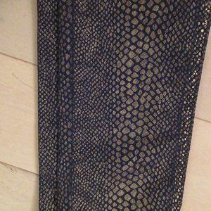 Dressy skinny jean by Silver Creek, Netherlands. Size 28 waist, 32 length. 97% cotton, 3% elastane. Might fit 28-29 because of stretch. Dark navy background with gold snake skin pattern. Brand new.