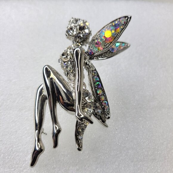 Large Crystal and Silver Tone Fairy Brooch