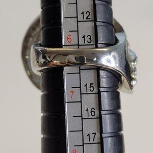 Silver Crystal Rhinestones Ring Wide Criss Cross Over Size 6.25
