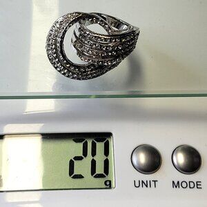 Large Silver Crystal Swirl Dome Cocktail Ring