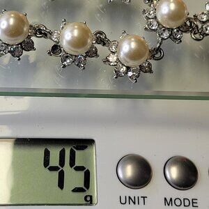 Silver Crystal and Pearl Necklace Bridal Necklace Party Necklace