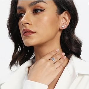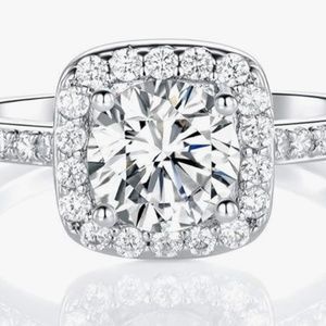 Silver Cubic Zirconia Promise Halo Engagement Promise Eternity Ring for Women