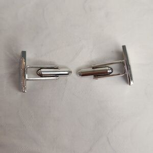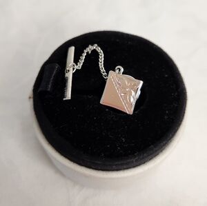 Vintage 80s, Shiny Sterling Silver Plate, Diagonal Bias Lines, Crosshatch, Chain & Bar Tie Tac, Very Good Vintage Condition, a few scuffs.