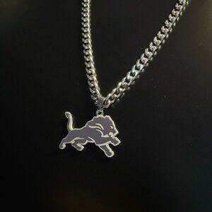 Silver Detroit Lions Necklace - Silver Plated - 5mm Cuban - 22" Chain - NFL