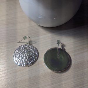 Silver Disc Earrings Textured Metal Round Drop Hammered Silver Dangle Earrings