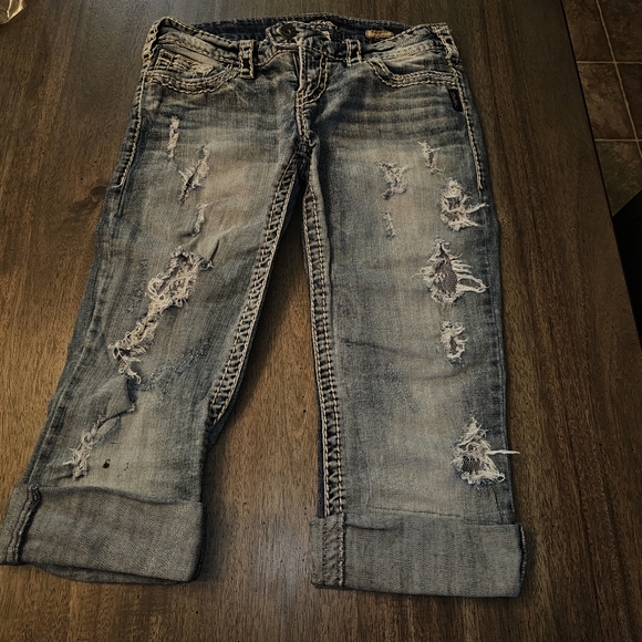 Silver Distressed Capris