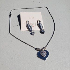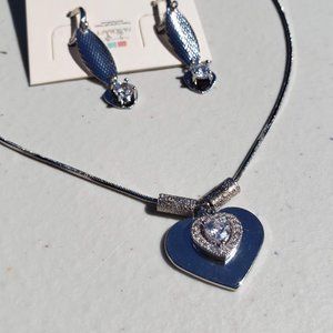 A beautiful silver faux diamond earring and necklace set with heart detailing. Perfect for everyday wear or gifting loved ones! Brand new, perfect condition.