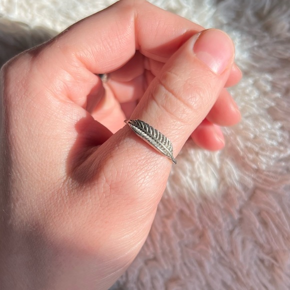 Silver tone feather ring