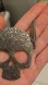 Intricate silver skull pendant with floral engravings. Comes with a matching chain.