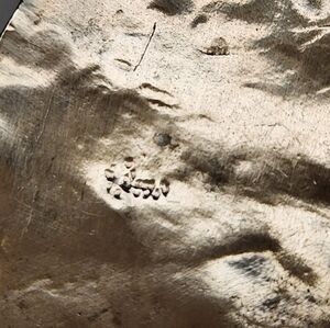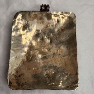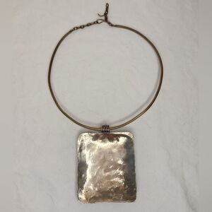 Antique late 19th early 20th Century One of a Kind original Art Piece, unknown stamp on flat hammered (800 not sterling) Silver back (last photo shows pre-polished patina), round brass cuff necklace with adjustable hook & chain clasp.