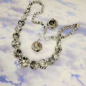 Ggrey with solid silver colored beads adorn throughout the whole length of this gorgeous collar necklace.