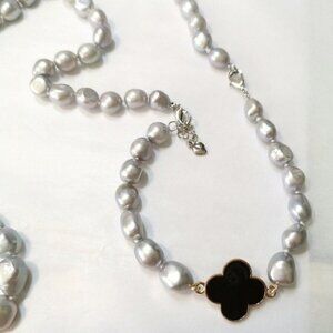 Silver Grey Freshwater Pearl Necklace Clover Flower 🆕