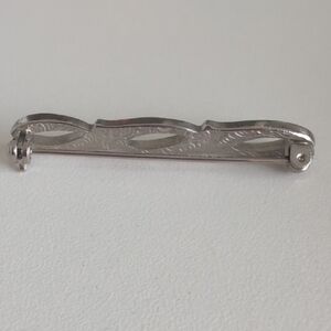 Silver brooch adorned with sparkling rhinestones. Approximately 4cm long.