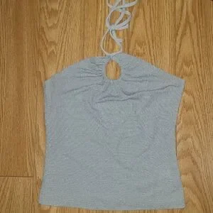 Silver glitter halter top with a unique ring detail. Perfect to dress up or down