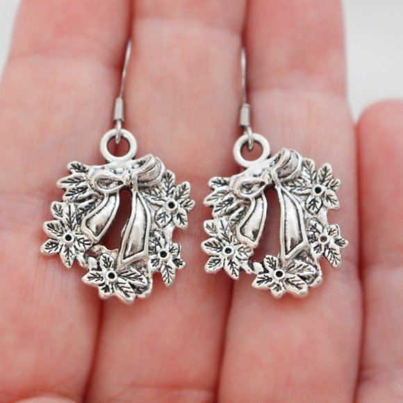 These lovely charm earrings feature Holiday Wreath charms and surgical stainless steel earring wires.