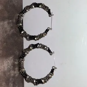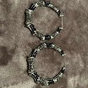 BNIP Silver Hoops with black and grey crystals.