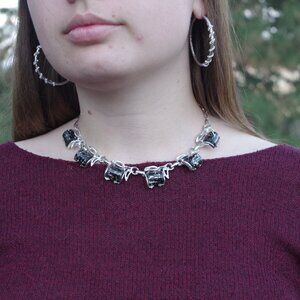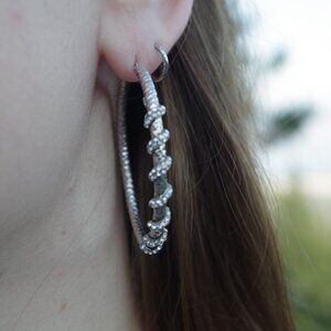 Silver hoops with rhinestones ,in new condition ,size is 2 inches long.