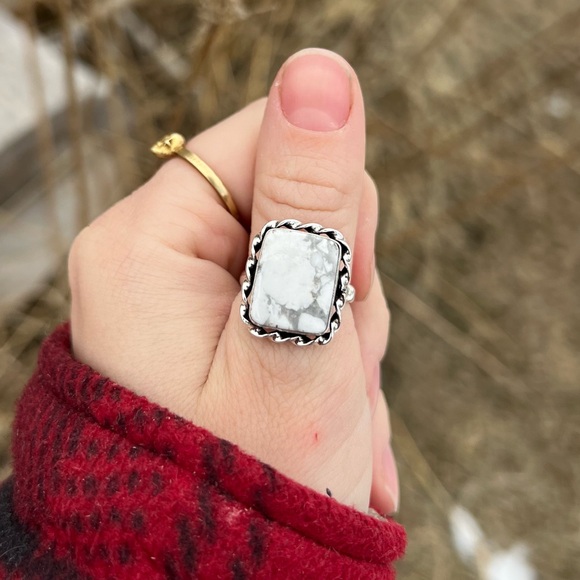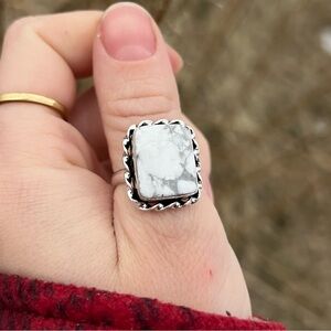 Handmade silver Howlite ring Stamped 925 sterling silver plated Approximately size 8
