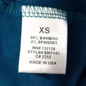This blue is to die for! It is a tunic length top with dolman sleeves. It is slightly longer in the back. It is been washed and worn once.