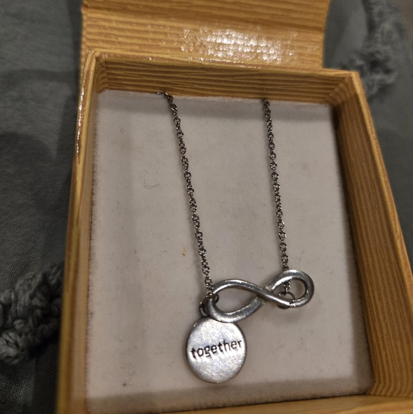 Elegant silver infinity necklace with a delicate chain. Perfect for adding a touch of sophistication to any outfit.