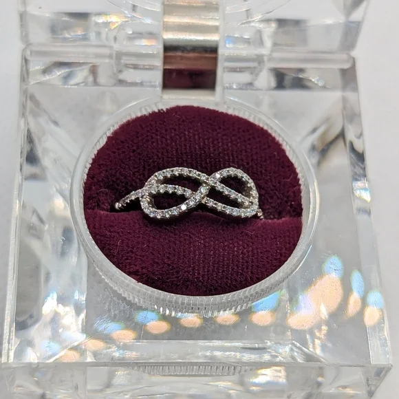 This elegant silver infinity ring is perfect for adding a touch of sophistication to any outfit. Its timeless design makes it a versatile accessory for any occasion. 925 sterling