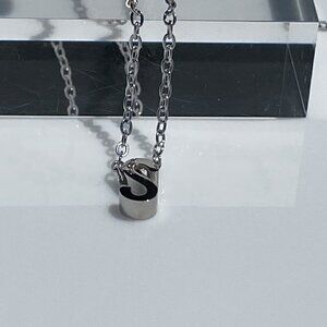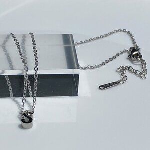 The chain comes with a 2" / 5 cm extender. Photo shows Letter S on Tiny Cable Chain.