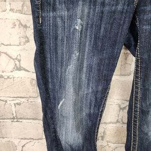 Silver Jeans Aiko Capri Dark Wash Distressed Factory Fade Size 29