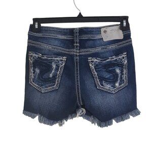 Silver Jeans Aiko NEW Mid Shorts Womens 24 Indigo Blue Distressed Fray Hem