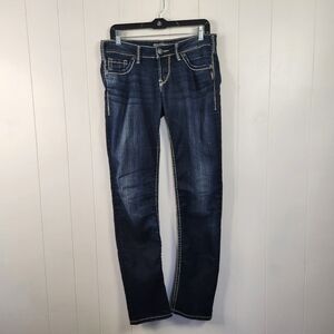 Silver Jeans Berkley Low Rise Dark Wash Stretch Jeans Womens Size 28 Long Tall