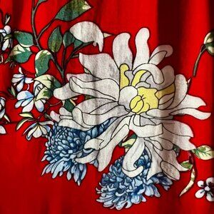 Silver Jeans Co. Red Floral Wrap Dress with Ruffles | Size L | Cranes & Blossoms