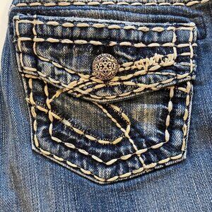 Silver Jeans Co. Suki Mid Straight leg 25 Womens Blue Denim Straight Leg Jeans size 25 with practical fake flap pockets ( but real pockets) and contrasting stitches embroidery.
